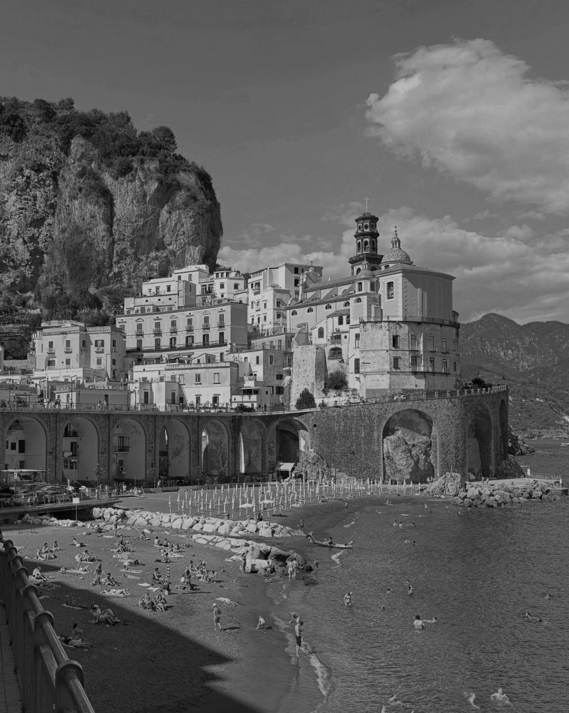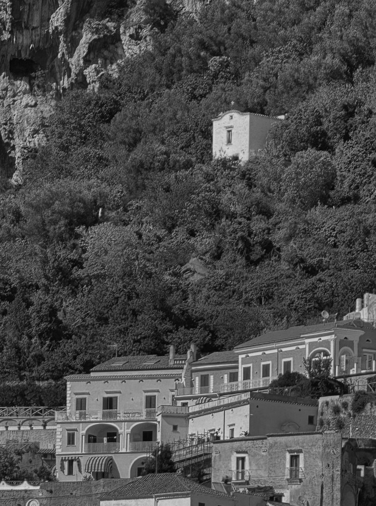 Ceo put od obale do nje je pun onih stepenica u kamenu, kojima se prolazi kroz tunele izmedju kuća, napuštenih ulaza, belih kamenih ograda, kao i pored bedema sa koga se vidi ceo Amalfi.