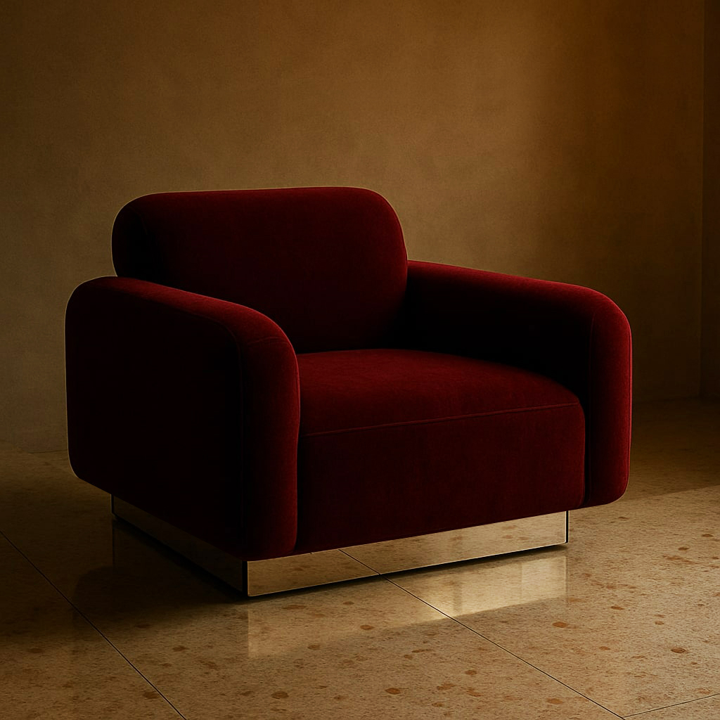 Njegov svet je skriven na površini, pak dinamičan ispod. Tamni pliš u burgandi boji, refleksija, tišina u prostoru, savršen sklad linija, ambijent koji skriva priču, govori tiho ali ostavlja utisak.