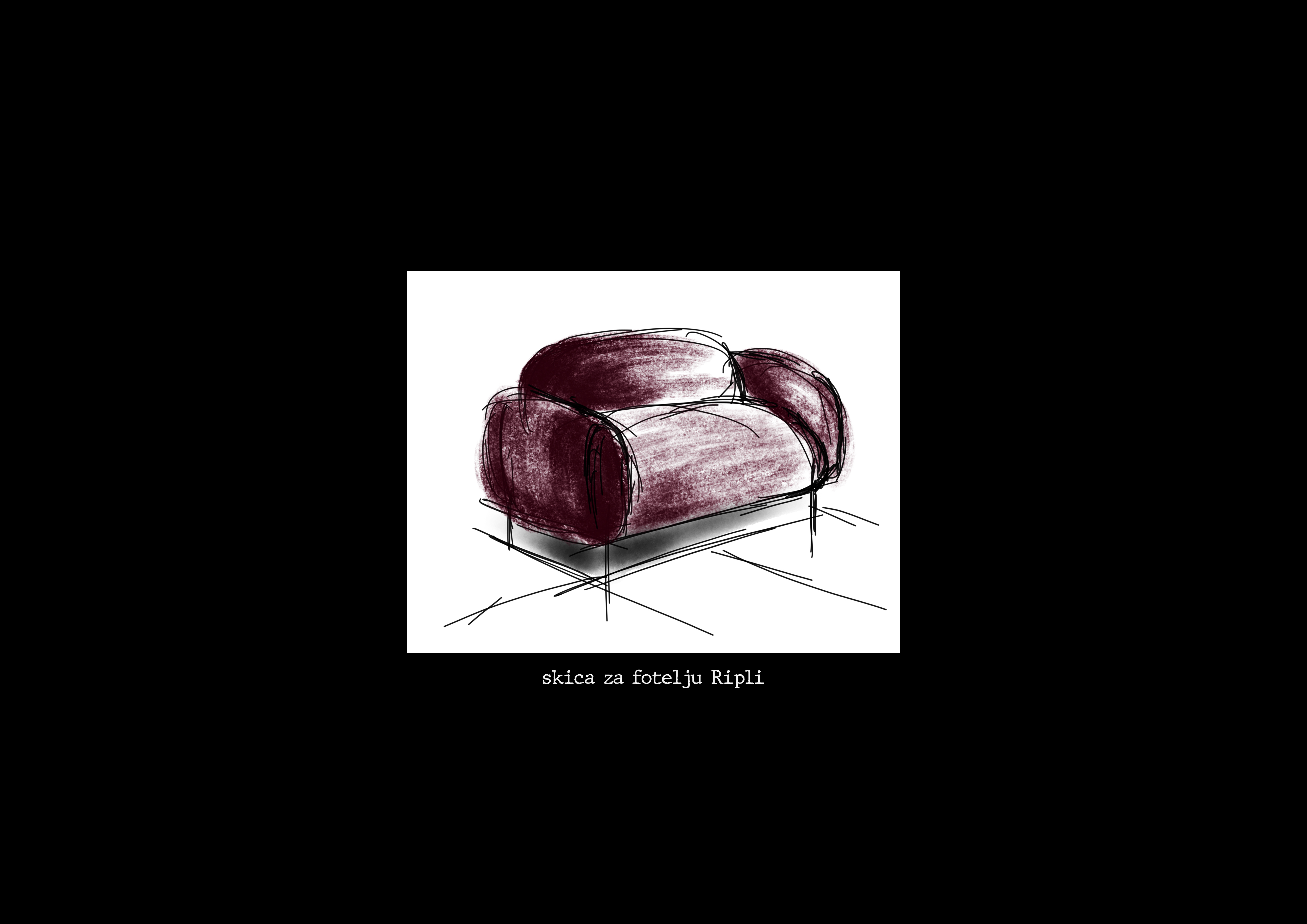 Tako kroz skice nastaje sofa koja ne pripoveda, već preispituje,