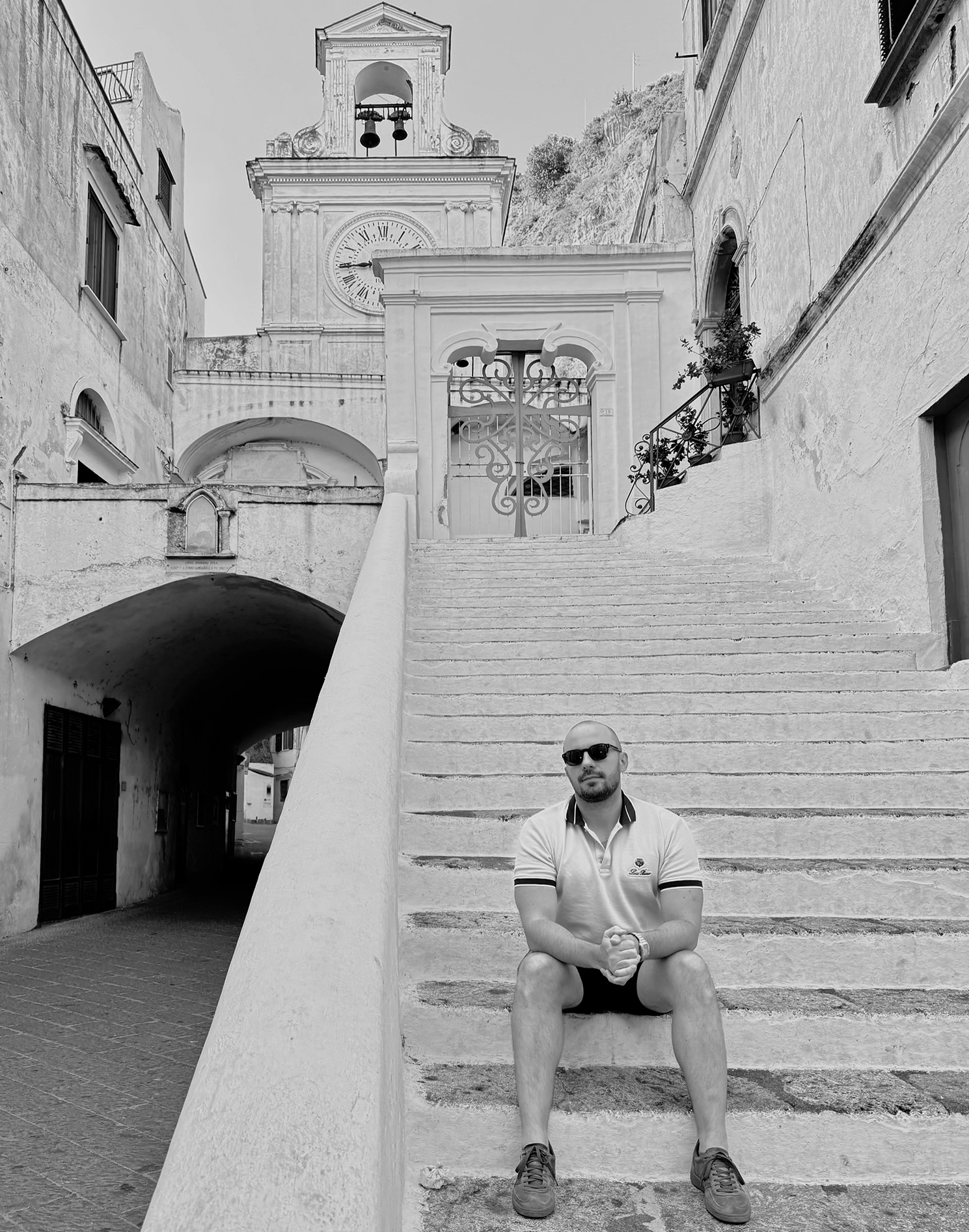 Ceo put od obale do nje je pun onih stepenica u kamenu, kojima se prolazi kroz tunele izmedju kuća, napuštenih ulaza, belih kamenih ograda, kao i pored bedema sa koga se vidi ceo Amalfi.